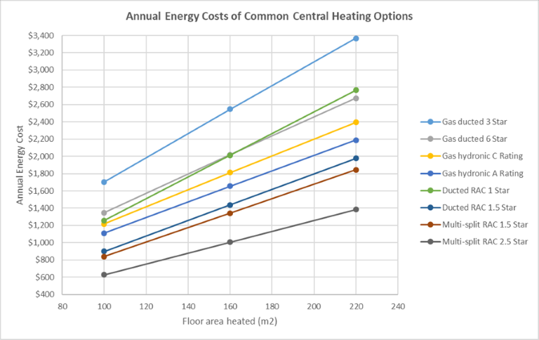 These graphs show how much heating your home really costs each year — and the difference is striking. For an average pre-2005 Melbourne home, rising electricity and gas prices have pushed energy costs higher than ever, with electricity now at 31.9c per kWh (peak) and 25.0c per kWh (off-peak).